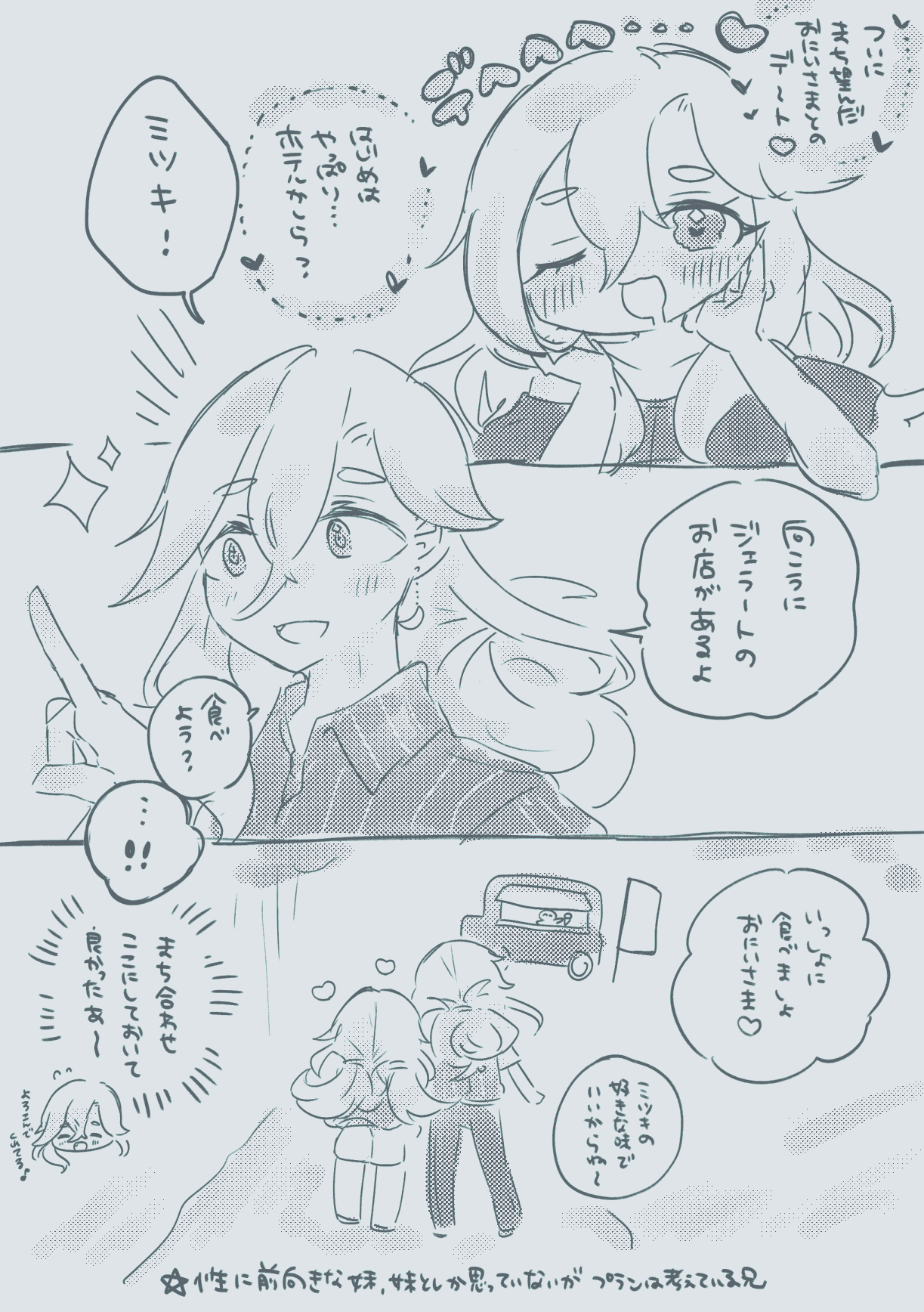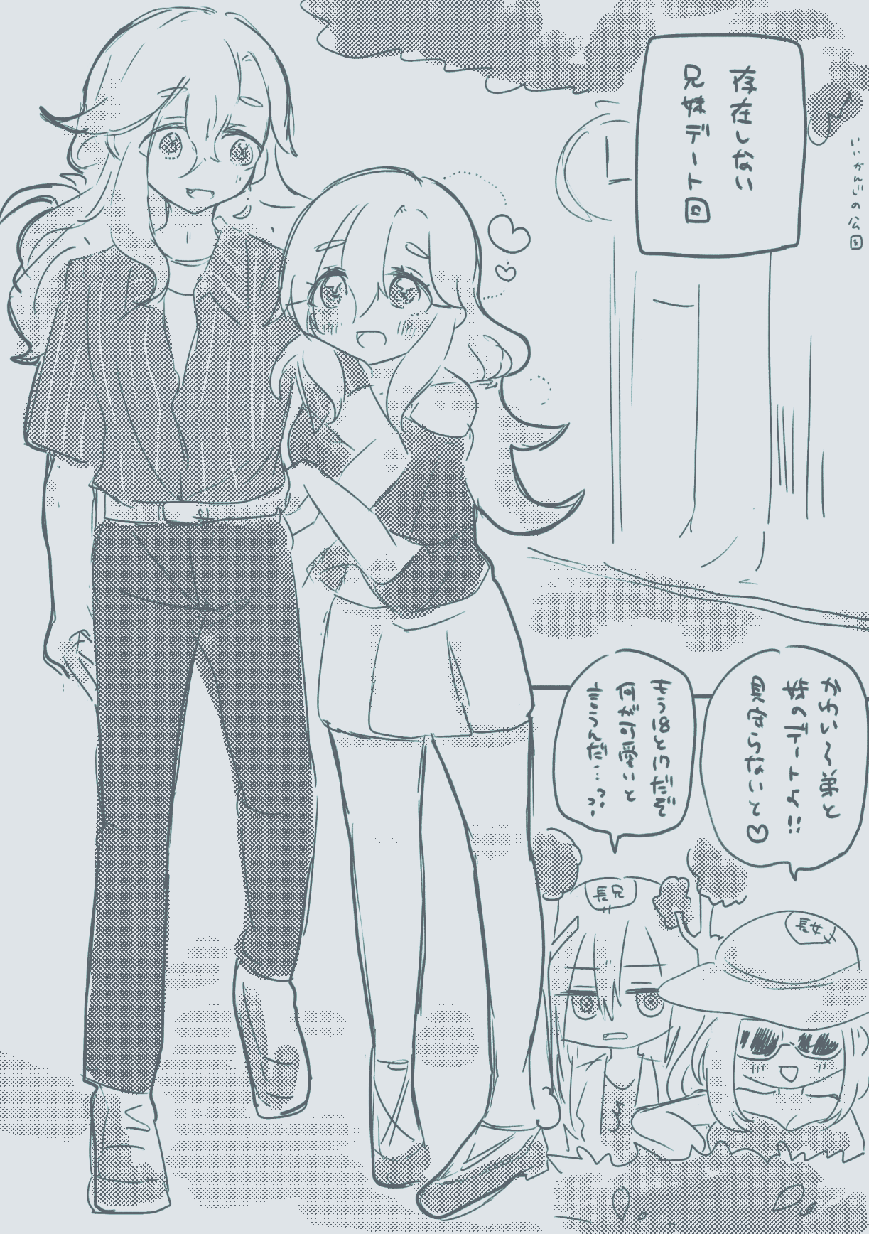 長男長女組もちょっと描きたくなってきた。長男、頭がドドド固いので冗談が全く通じないタイプ。でもこの後ジェラート買ってきてくれる(妄想)(尾行してるのに?)